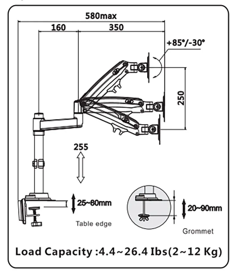 - Support load from 4.4 to 26.4 lbs (2-12 kg).