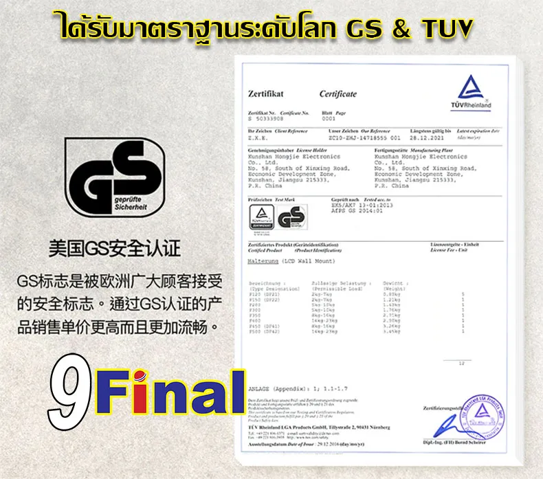 - ได้รับมาตราฐานระดับโลกหลายตัว สินค้ารับประกัน 1 ปี