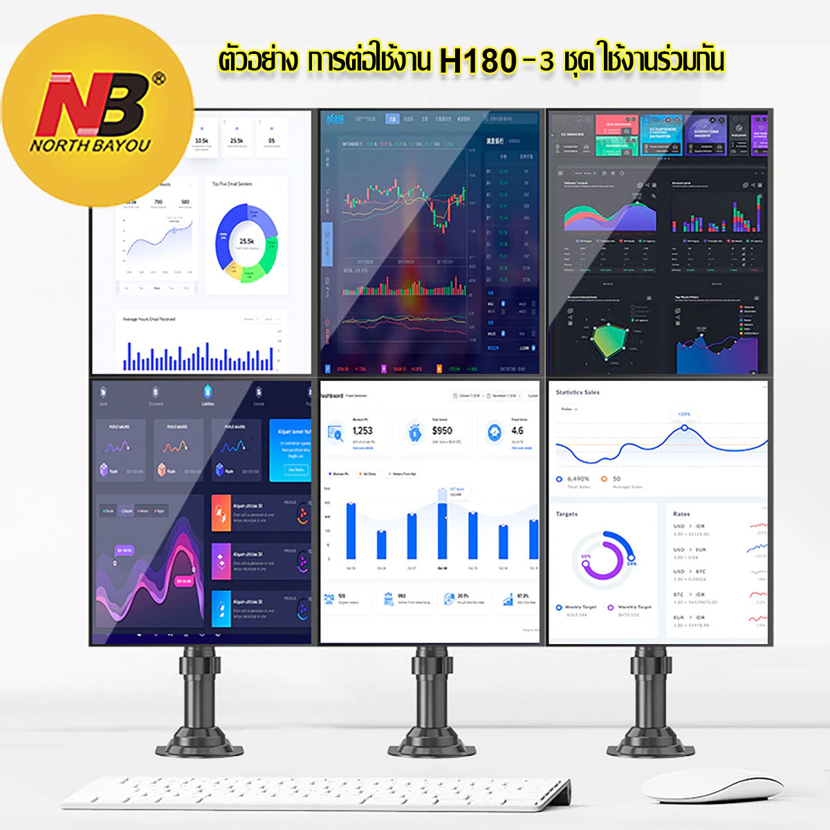 North Bayou NB H180 by melecronics ขาตั้งจอคอม ขาตั้งมอนิเตอร์ ขาแขวนจอคอม ที่ยึดจอ แบบ Gas Strut Desktop Monitor Stand , Dual Monitor Arm, Monitor Desk Mount , Stand Monitor, 22-32 นิ้ว *2 / 12 kg *2