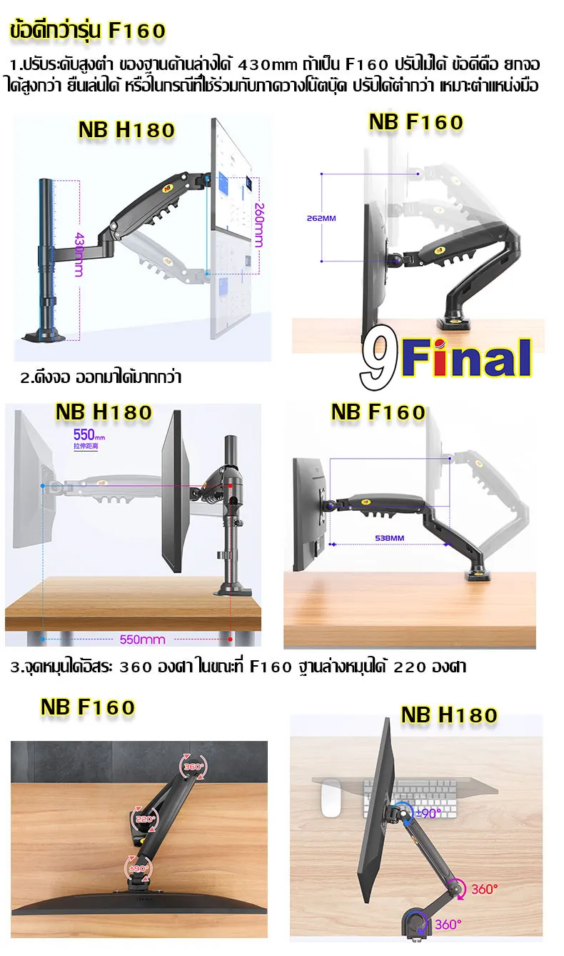 - NB F160 Desktop dual screens flexi-mount ใช้งานได้พร้อมกัน 2 จอ