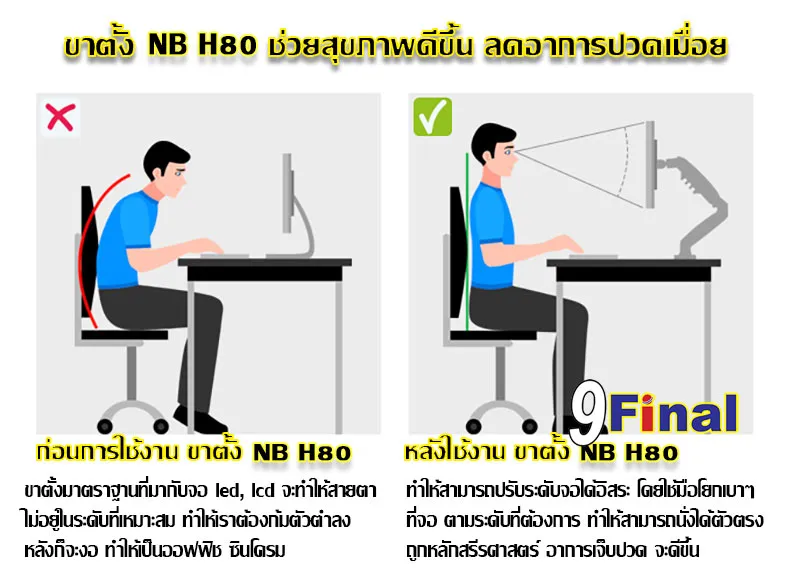 ขาตั้งจอ ขาตั้งจอคอม ขาตั้งจอคอมพิวเตอร์ ขาตั้งมอนิเตอร์ ขาแขวนจอคอม ที่ยึดจอ แท่นยึดจอมอนิเตอร์ North Bayou NB F80 Monitor Stand Monitor arm GAS Spring….Free NB FP-10 ชุดแขวนจอมอนิเตอร์