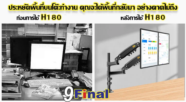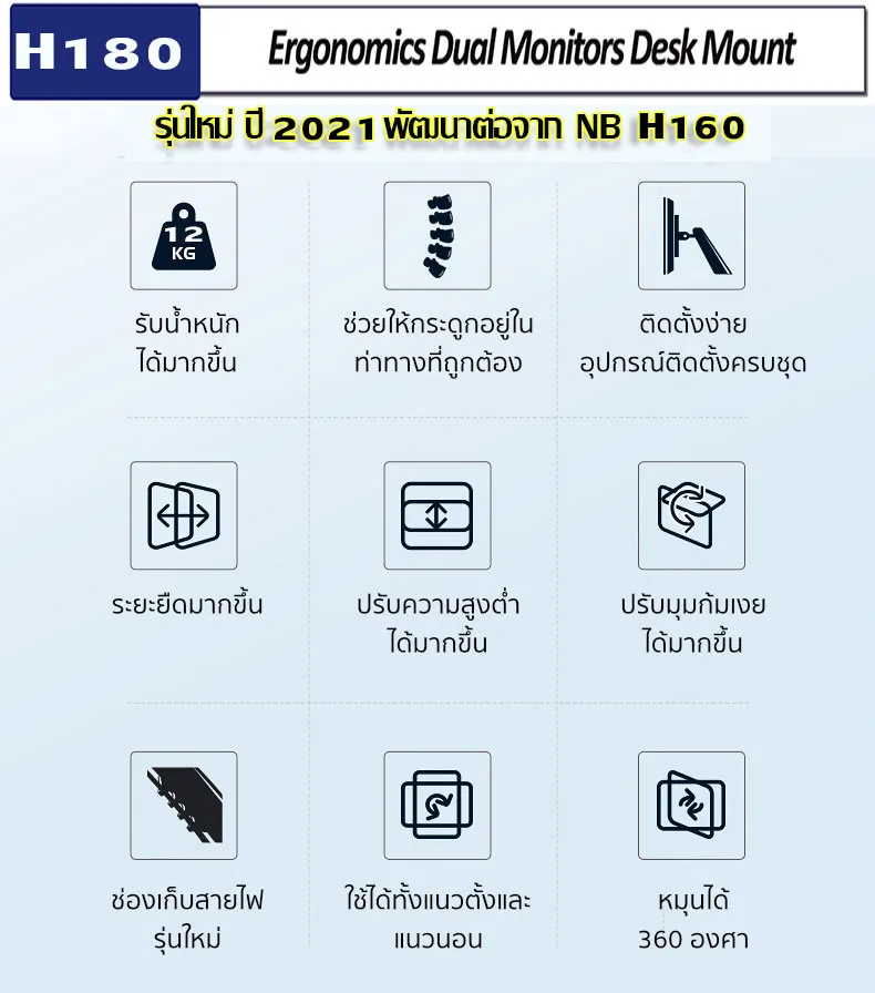 North Bayou NB H180 by melecronics ขาตั้งจอคอม ขาตั้งมอนิเตอร์ ขาแขวนจอคอม ที่ยึดจอ แบบ Gas Strut Desktop Monitor Stand , Dual Monitor Arm, Monitor Desk Mount , Stand Monitor, 22-32 นิ้ว *2 / 12 kg *2