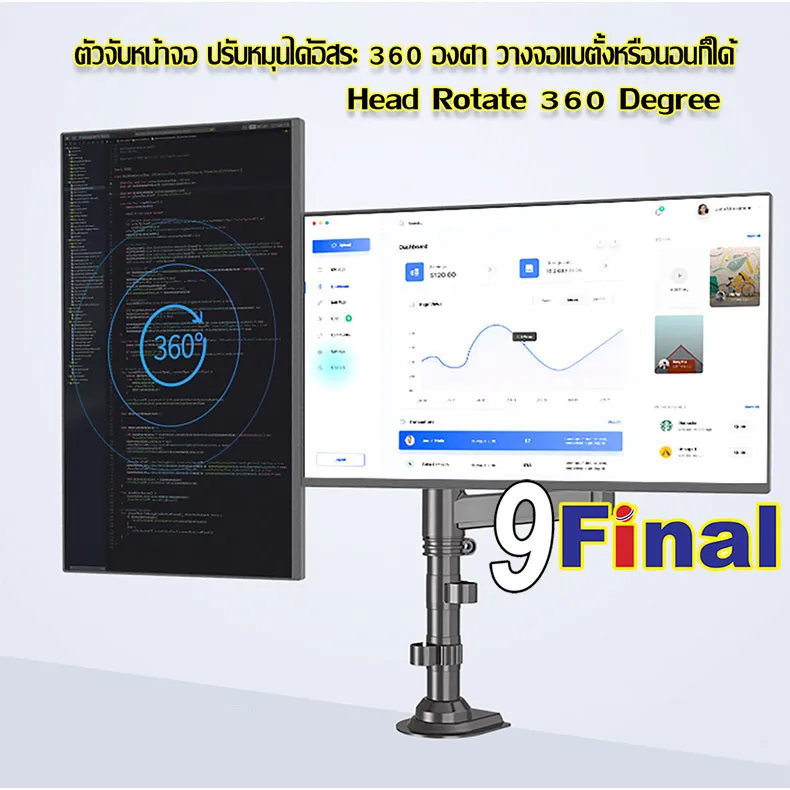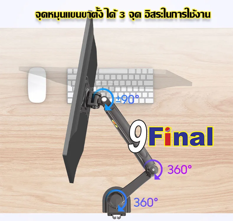- แขนจอ หมุนได้ 360+/- 180 องศา