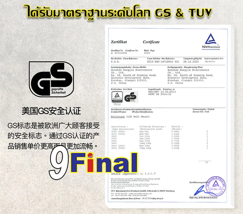- ได้รับมาตราฐานระดับโลกหลายตัว สินค้ารับประกัน 1 ปี