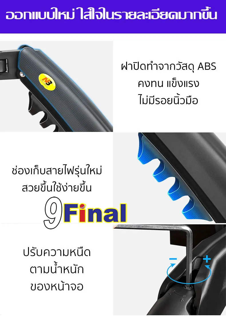 - ขาตั้งจอ NB F150BK รุ่นปรับปรุงใหม่ ปี 2022 รับน้ำหนักมากถึง 7 KG และตัวจับจอแบบใหม่ รูปสี่เหลี่ยม