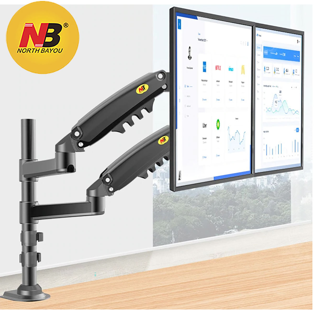 North Bayou NB H180 ขาตั้งจอคอม ขาตั้งจอคอมพิวเตอร์ ขาตั้งมอนิเตอร์ ขาแขวนจอคอม ที่ยึดจอ แท่นยึดจอมอนิเตอร์ แบบ Gas Strut Desktop Monitor Stand , Dual Monitor Arm, Monitor Desk Mount , Stand Monitor, LCD Stand รองรับ 22-32 นิ้ว *2( Black)