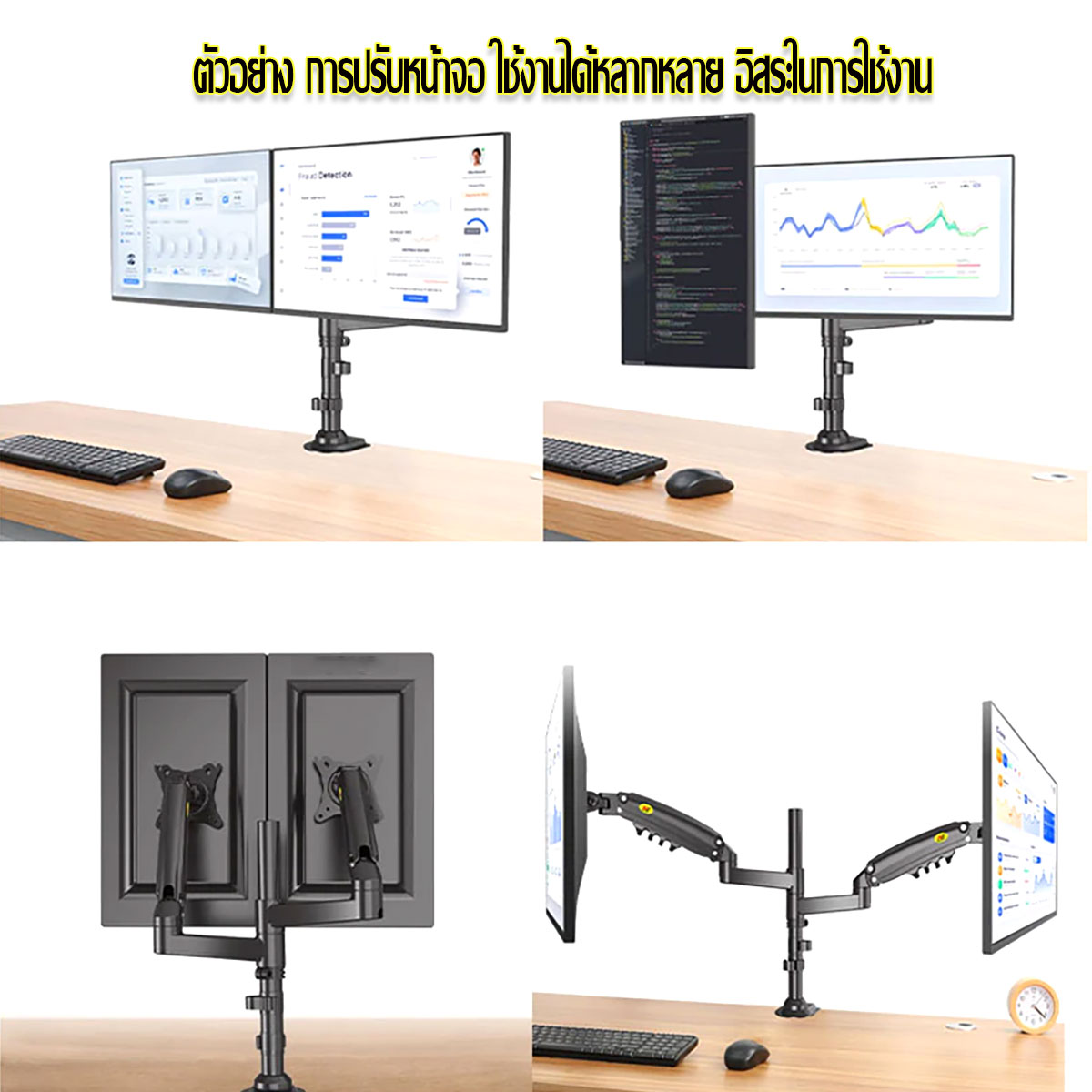 Dual LCD ARM NB F160 Gas Strut Desktop Dual Screen LCD , Monitor Arm , LED Monitor Stand , LCD Stand, LED Monitor Stand ขาตั้งจอคอม 2จอ ,ขาแขวนจอ มอนิเตอร์lcd ,led แบบ 2 จอ แบบตั้งโต๊ะ รองรับจอ 17 -27